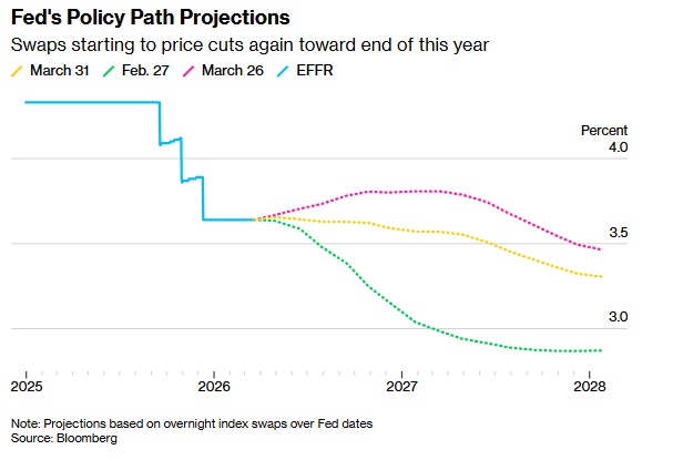 周二,投资者反而预计美联储将维持基准利率不变,甚至可能在今年晚些时候转向降息,因为决策者势将权衡能源价格上涨带来的风险——这种上涨可能更多地拖累经济增长,而非引发持久的通胀。