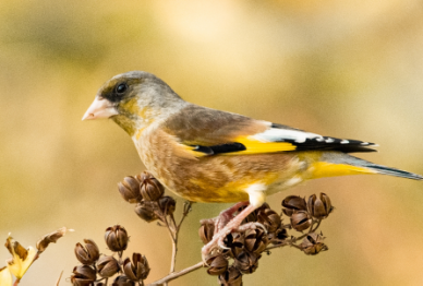第二张图片中的小鸟名叫金翅雀,最大的特点就是尾巴下的羽毛呈现金色,飞起来的时候尤为明显。它的叫声有点像小铃铛,叮铃铃、叮铃铃响个不停。粉嫩嫩的小嘴不仅发出的声音非常悦耳,实用性也是非常强呢,它们可以吃很多植物,尤其爱吃葵花籽,一口一个,吃嘛嘛香。