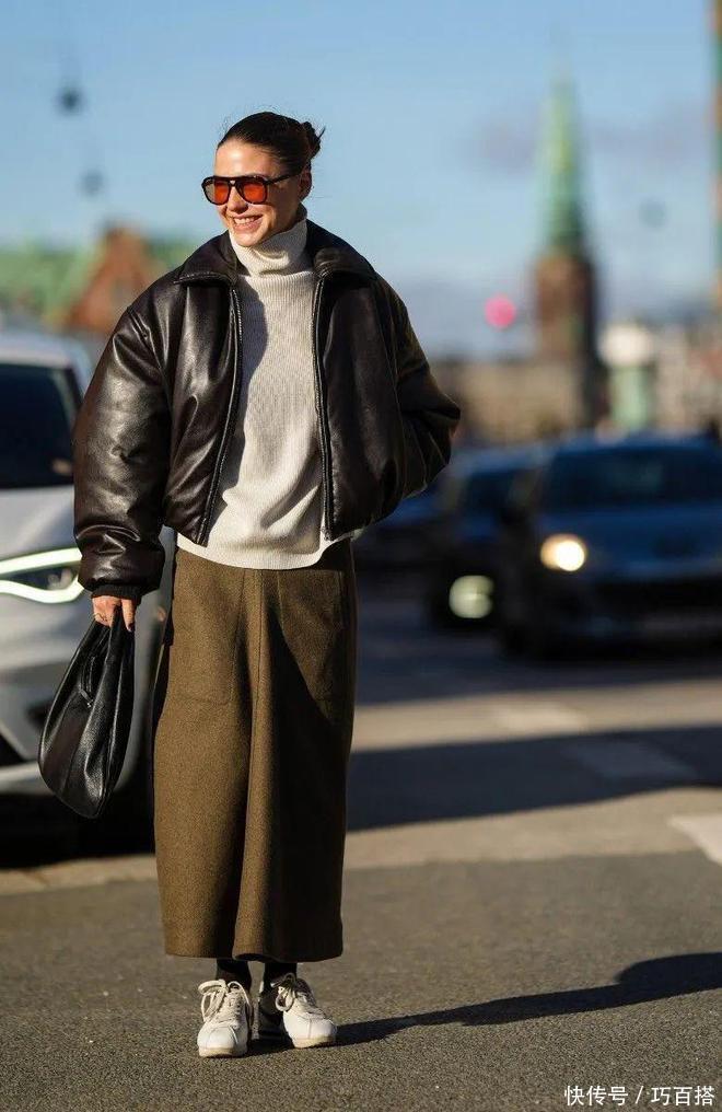 选择长裤无法避免的情况下,选择半裙与之搭配效果也不赖,优先考虑百褶裙可以起到轻微修饰小肚腩的效果,值得一试。