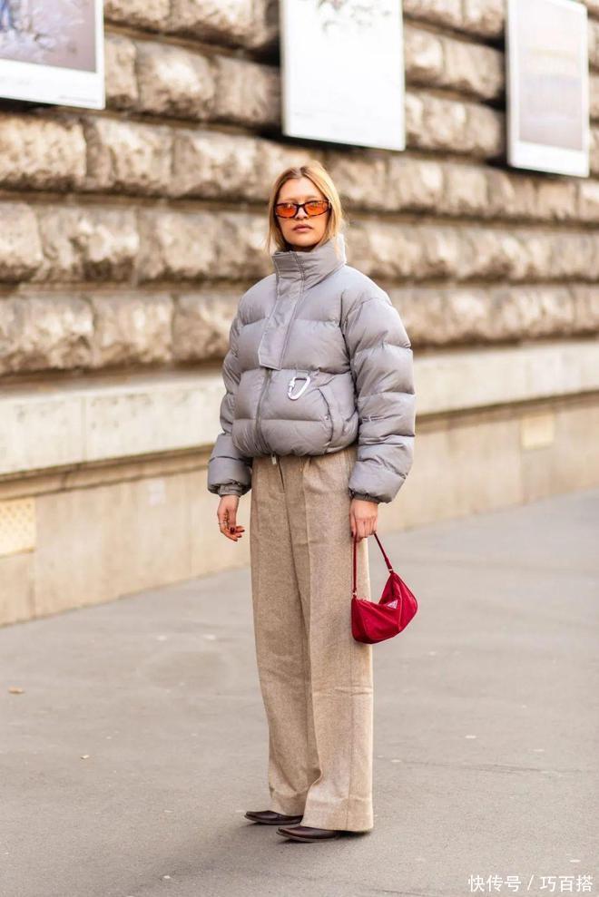 临近文章结尾需要说一下的是,短款羽绒服搭配高腰半身裙、高腰长裤时,需要认真挑选下装款式和面料。