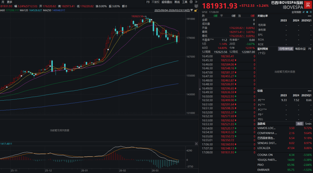 2025年巴西股市走出了一波牛市,2026年继续延续上涨趋势。今年2月,巴西伊博维斯帕指数创下了历史新高,达到了192623.56点。